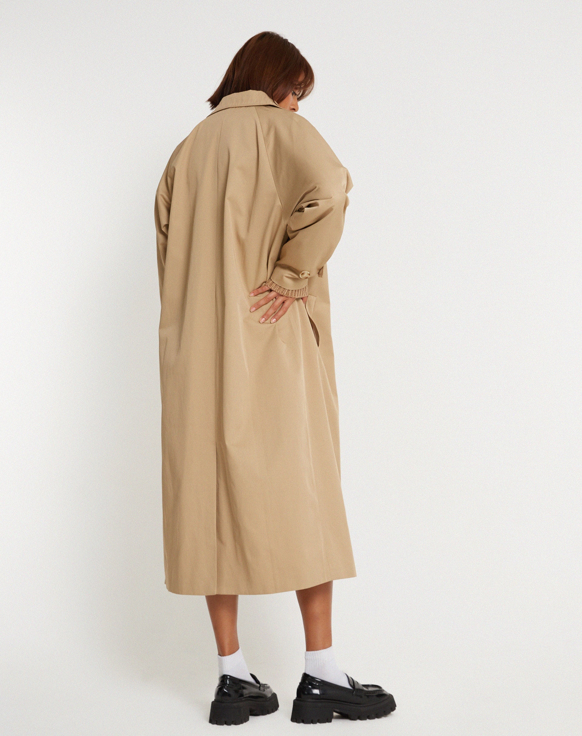 Prepárate para la próxima temporada con nuestra gabardina Assa Assa. Con corte largo, botones en la parte delantera, cuello y bolsillos en un tono tostado con forro a rayas. Un abrigo que llevarás con cualquier conjunto.