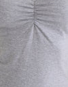 El Obanai top en tejido de licra gris carbón, presenta un largo regular, corte ajustado, escote en V y mangas cortas. Se completa con un detalle fruncido en la parte delantera central. Combínalo con nuestros vaqueros acampanados.
