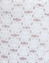 La Sanjana top de encaje negro negrode encaje negro texturizado, presenta un escote en pico profundo con un delicado ribete festoneado. Mangas cortas y estampado semitransparente. Combínalo con unos Vaqueros acampanados rígidos de tiro bajo.